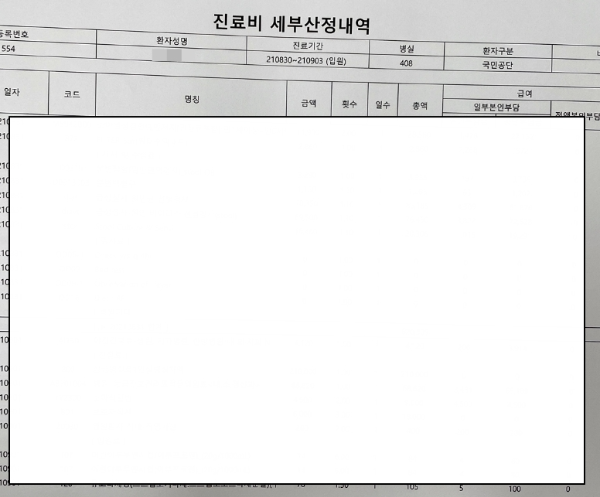 - 진료비 세부내역서